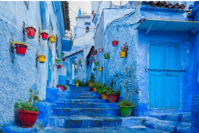Chefchaouen, ünlü mavi sokakları ve binaları ile bilinen bir dağ kasabasıdır. Şehrin her köşesinde karşınıza çıkan mavi tonları, huzur verici bir atmosfer yaratır. Mavi Şehir olarak bilinen Chefchaouen, fotoğraf çekmek ve benzersiz bir Fas deneyimi yaşamak isteyenler için ideal bir destinasyondur.
