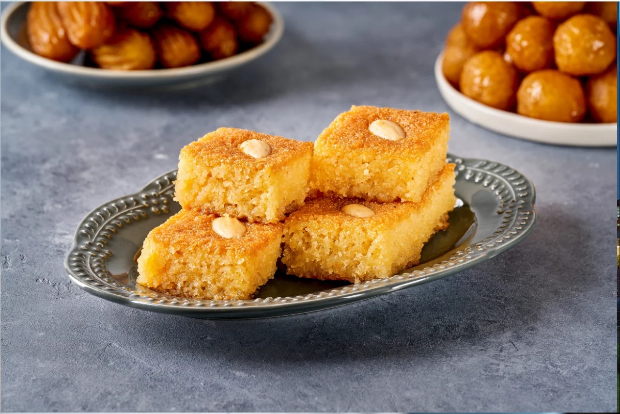 - Basbousa: İrmik ile yapılan ve şerbetle tatlandırılan bir tatlıdır.